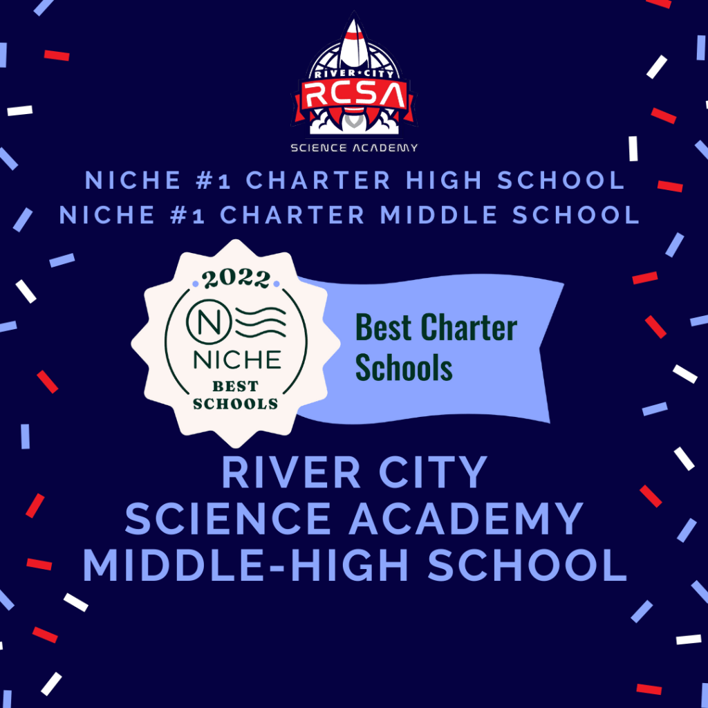 River City Science Academy Middle-High was ranked #1 in both the Middle and High School category for “The 2022 Niche Best Charter Schools” ranking. Niche determines this award based on analysis of key statistics and millions of reviews from students and parents. Factors that determine a schools ranking include: state test scores, student-teacher ratio, student diversity, teacher quality, and charter school ratings. Our students and teachers have overcome many obstacles this past year, ultimately coming together to meet and exceed the academic expectations set forth. It is because of their hard work and our parental support that we have been ranked #1 in both categories.