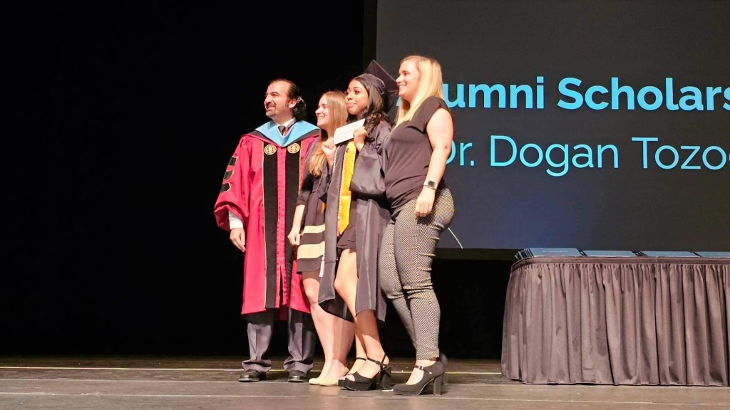Dr. Dogan Tozoglu returned to the stage to present the Dorrian Scholarship program to deserving senior, Marlene Silva-Juarez.
