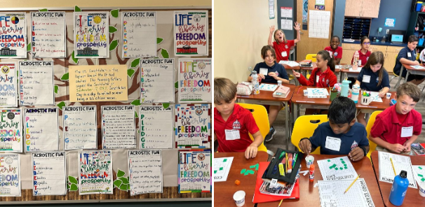 RCSA Mandarin fourth grade students celebrated and learned about Constitution Day in school September 18 – 22. They watched a video, colored pictures, wrote acrostic poems, and played Constitution Bingo as they learned about this important document, including the Bill of Rights and other amendments that support the constitution.