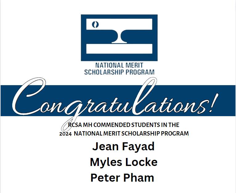 River City Science Academy Middle High School is proud to announce today the recognition of three students in the 2024 National Merit Scholarship Program. Jean Fayad, Myles Locke, and Peter Pham have all been designated as Commended Students for their exceptional academic achievements.