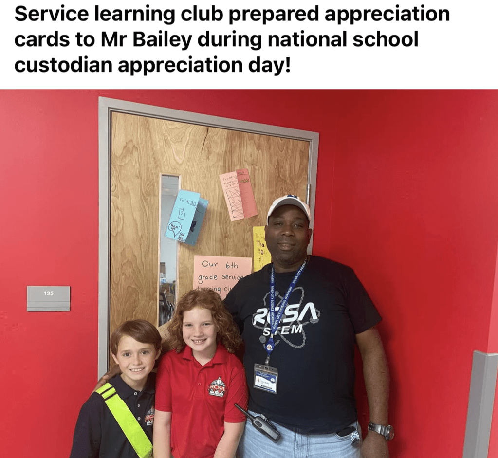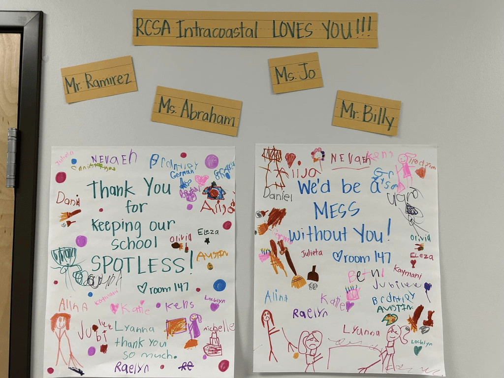 RCSA Intracoastal recognized their incredible custodial staff, Mr. Ramirez and Mrs. Abraham, and Ms. Jo and Mr. Billy.