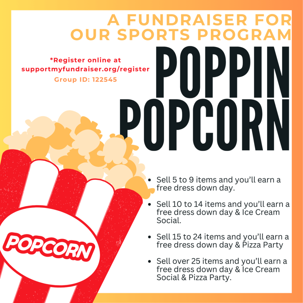To fund their sports programs, RCSA Innovation is hosting a Popcorn Fundraiser!