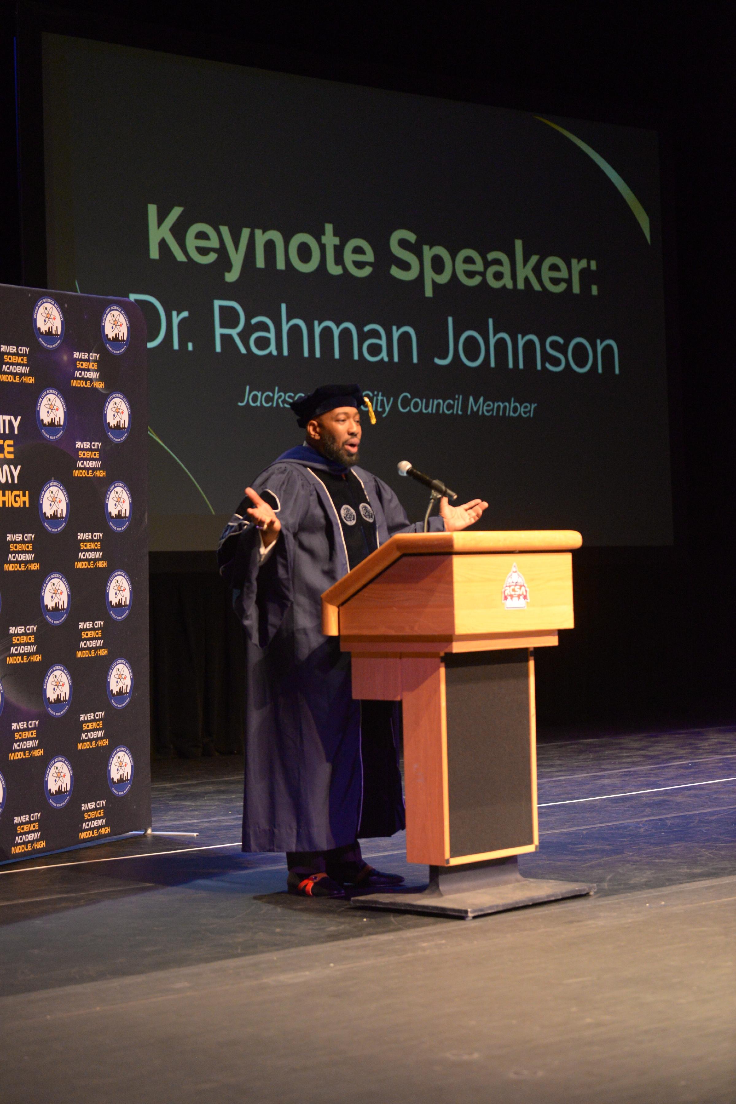 RCSA would also like to humbly thank our guest speakers for their inspiring words and presence at our commencement ceremony: Representative Kiyan Michael, Congressman Raul Arias, DCPS Board Member Cindy Pearson, and of course, our incredible keynote speaker for the evening, Jacksonville City Councilman Dr. Rahman Johnson..