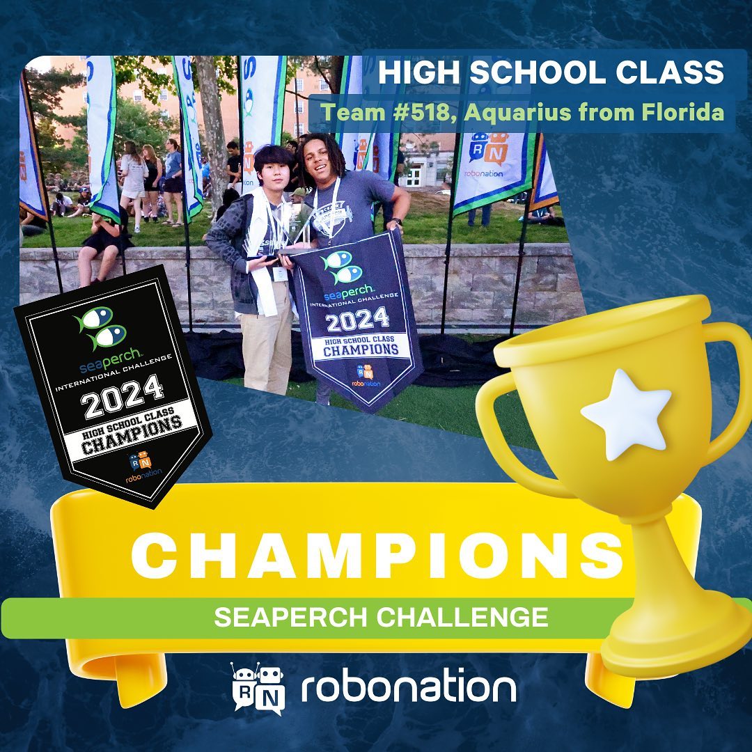 Aquarius placed first in two of three regional competitions, which earned an invite to the 14th Annual International SeaPerch Challenge held on June 1, 2024, at the University of Maryland, College Park. Team Aquarius finished fourth place in the obstacle course, and first place in the mission course and were the overall high school stock class champions for the second year in a row!