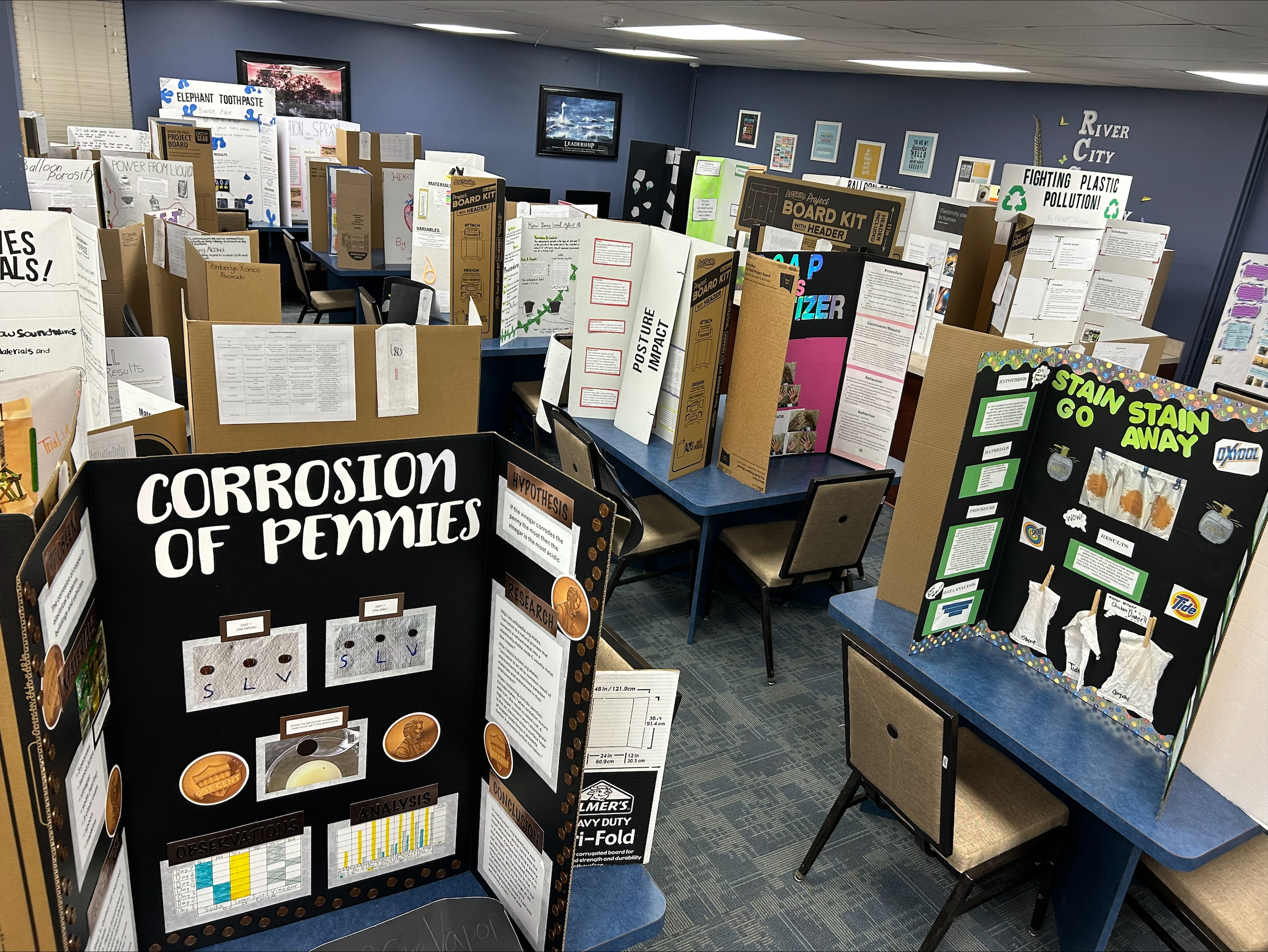 RCSA Middle-High students displayed their Science Fair projects, while their teachers worked diligently to evaluate them. Recognition to Mrs. Smith, Mrs. Bessing, Mrs. Elif, Mrs. Densmore, Mrs. Schumacher, and Mrs. Beth for organizing and facilitating this event.