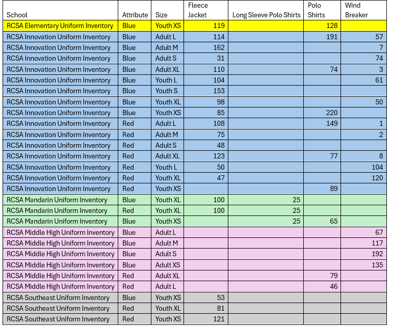 β’ Parents are welcome to visit any RCSA campus to purchase uniforms, regardless of their childβs enrolled location.