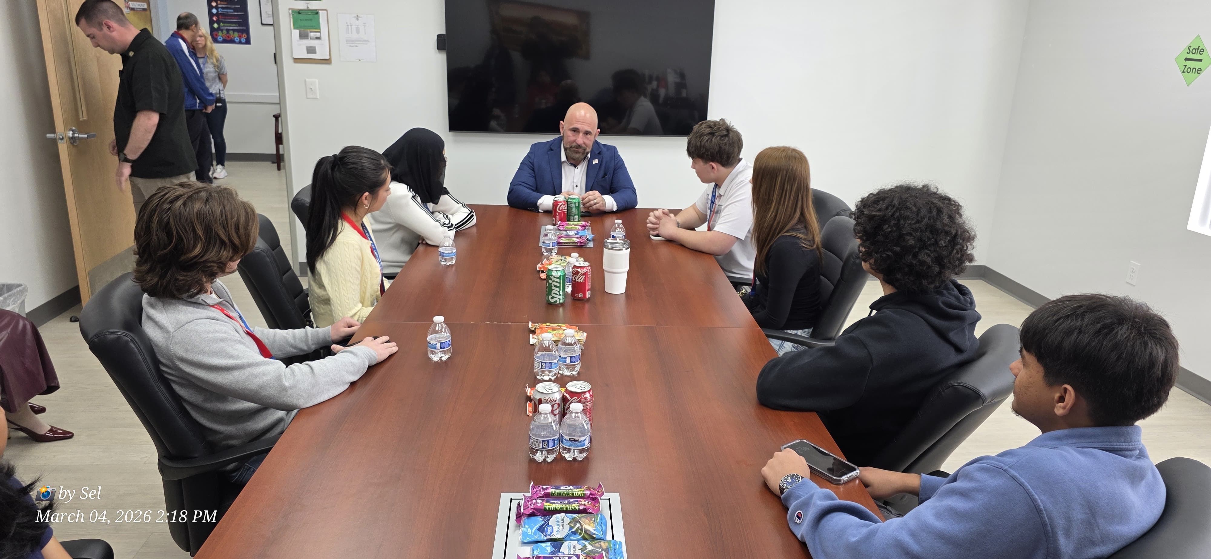 The visit also included a student panel discussion with select seniors and seventh-grade civics students. During the conversation, students engaged with Collins on current events, leadership, and the importance of informed civic participation.