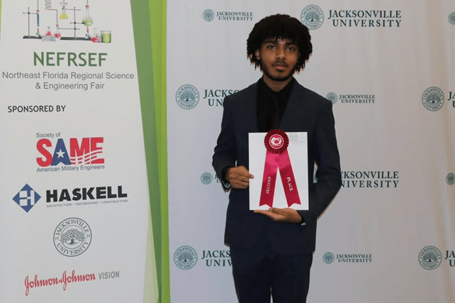 RCSA MH junior student Deshaun Hadley has qualified for the State Science Fair following an outstanding performance at the Northeast Florida Regional Science and Engineering Fair (NEFRSEF)!